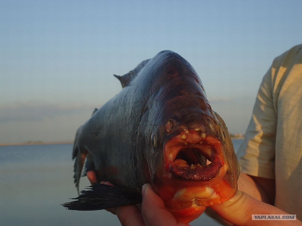Очередная находка из серии «Чужой». Рыболовный трофей — типичная амазонская пиранья, выловленная в Доне. Климат юга России, а может, и тёплые промышленные стоки, позволили тропической рыбе выжить и подрасти. Надеюсь, до появления популяции дела не дойдёт.:)